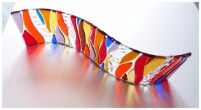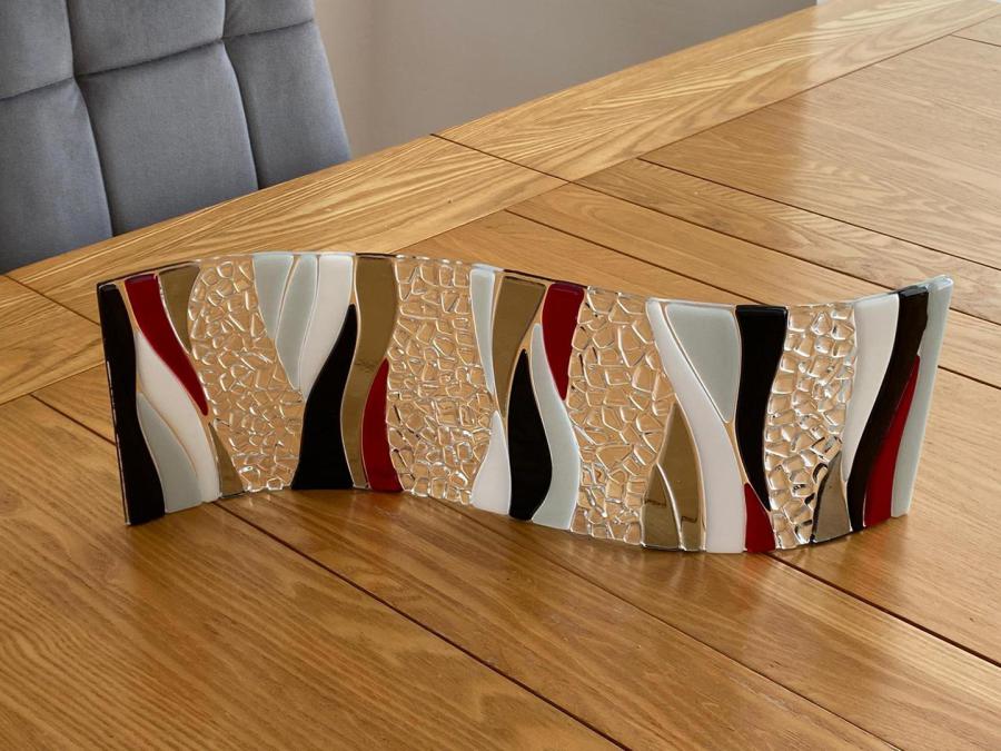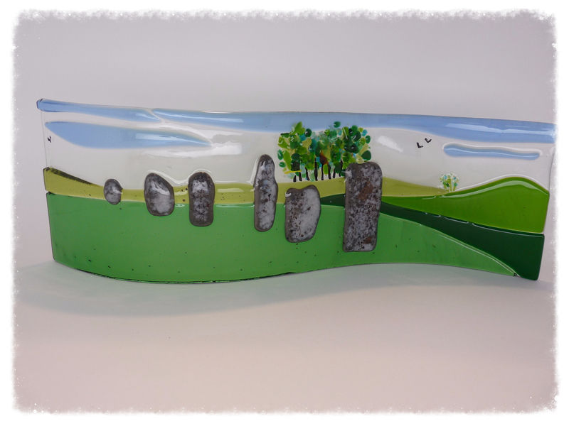 "I have just recieved Hilary's glass that she has made for our 10th Wedding Anniversary. It is absolutely beautiful..and she has matched the colours of our lounge /diner perfectly. Itb looks stunning with the sun shining through it.