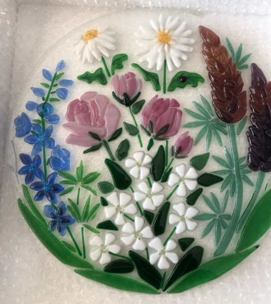 Thank you so much for my fused glass. I am delighted with it and pleased that the outcome fits my brief perfectly and looks so beautiful in my bathroom and is admired by many.